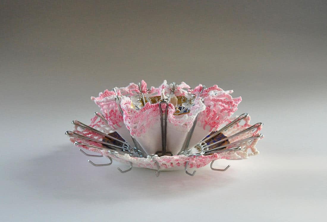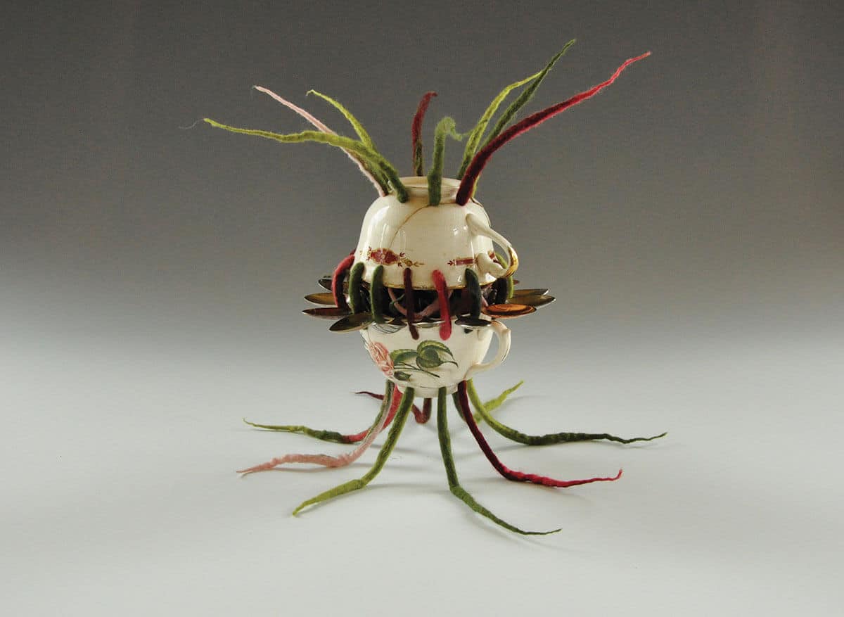 Wool, Found Porcelain and Spoons