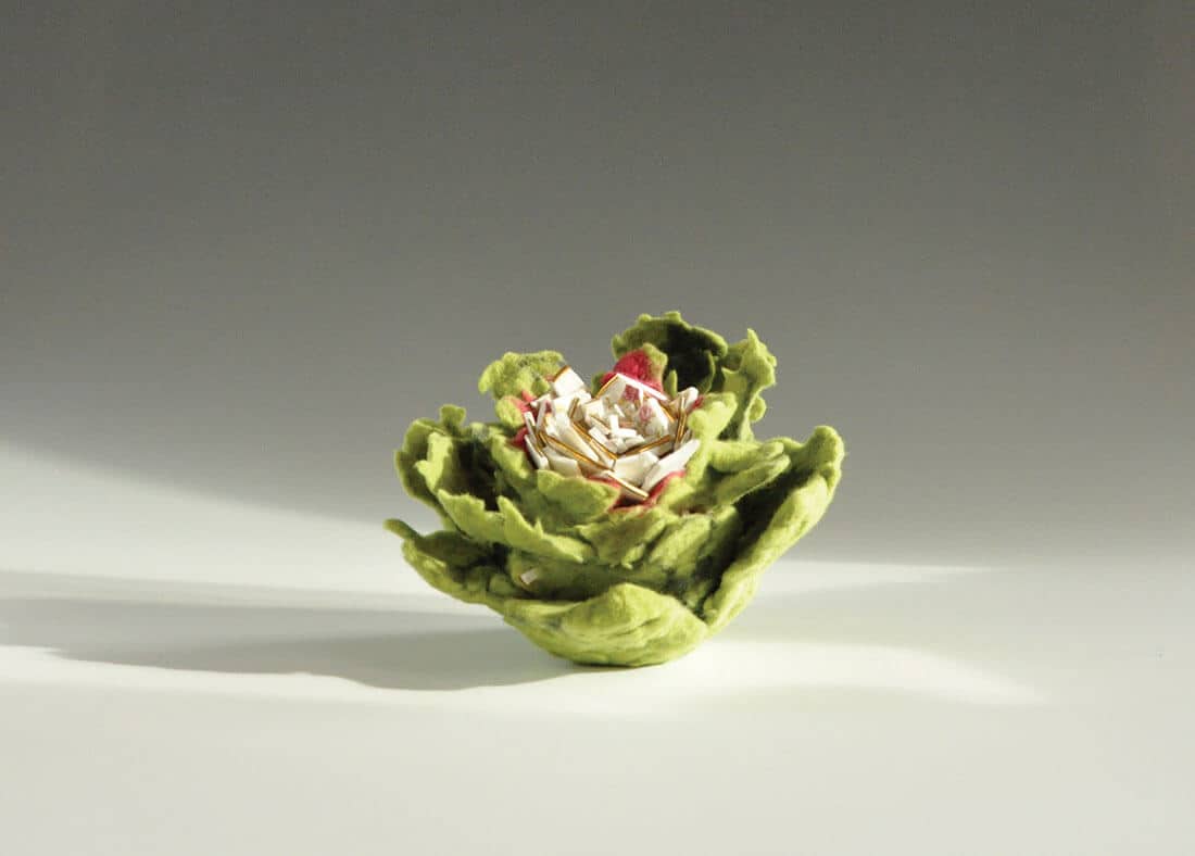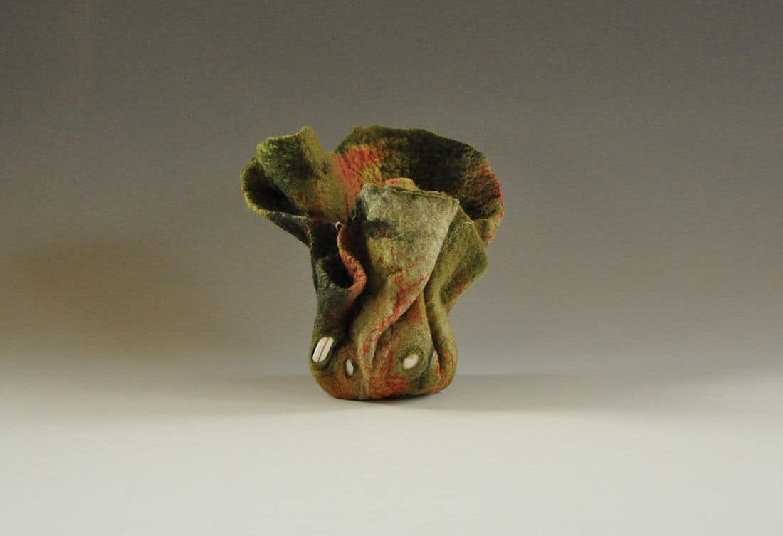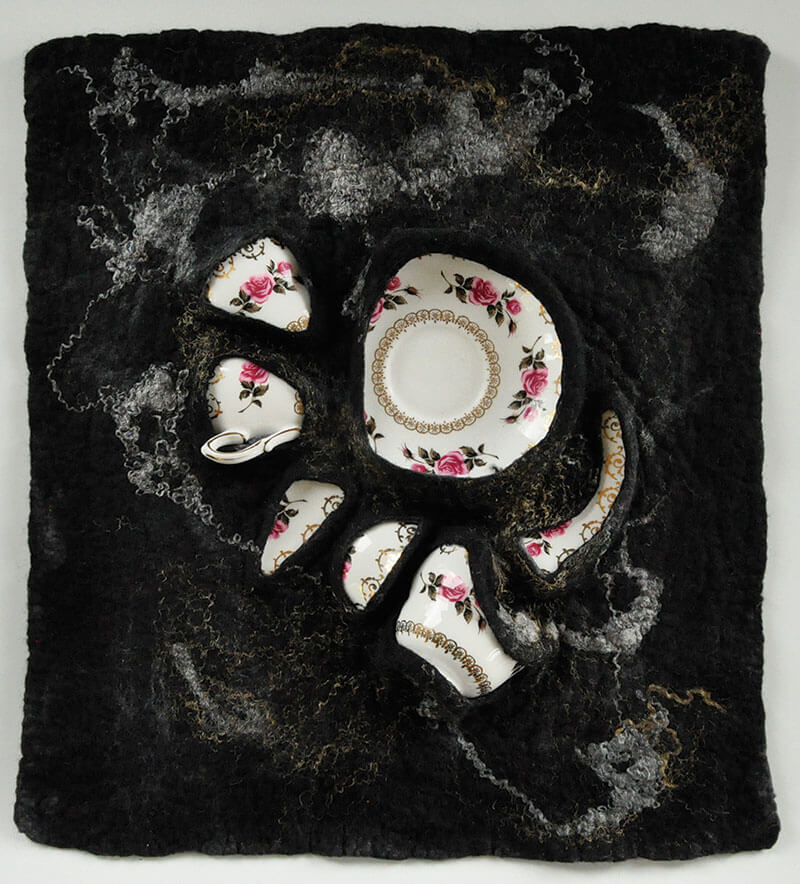 Within this framework, I also consider the role of an object and the attachments of history, tradition and obligations of inheritance. I deconstruct and repurpose commonplace items incorporating the sustainable, nurturing properties of felt as a metaphor of nature’s resilience. My work is a narrative of transformation and change, responding to our shifting bonds of emotional and sentimental attachment to an object through time; in particular, when affection and burden intersect. The assemblages I create are meant to evoke memories and experiences in the viewer, challenging them to consider their own role in the changing ecological landscape.