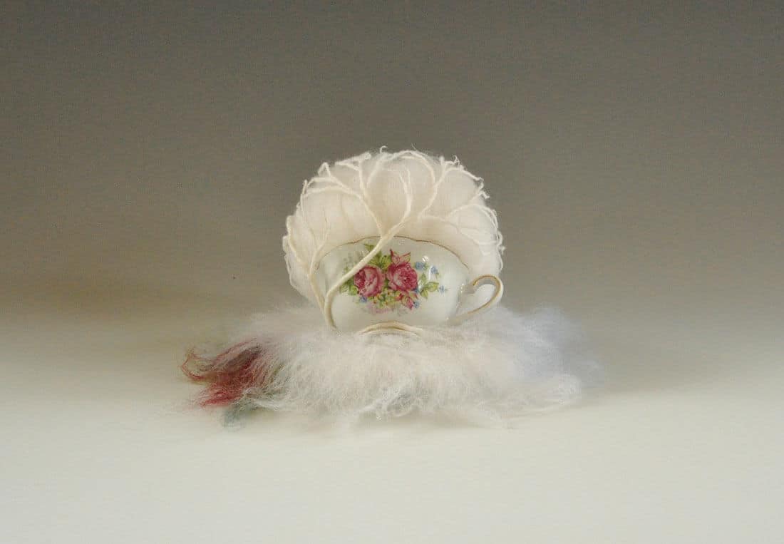 wool, found porcelain